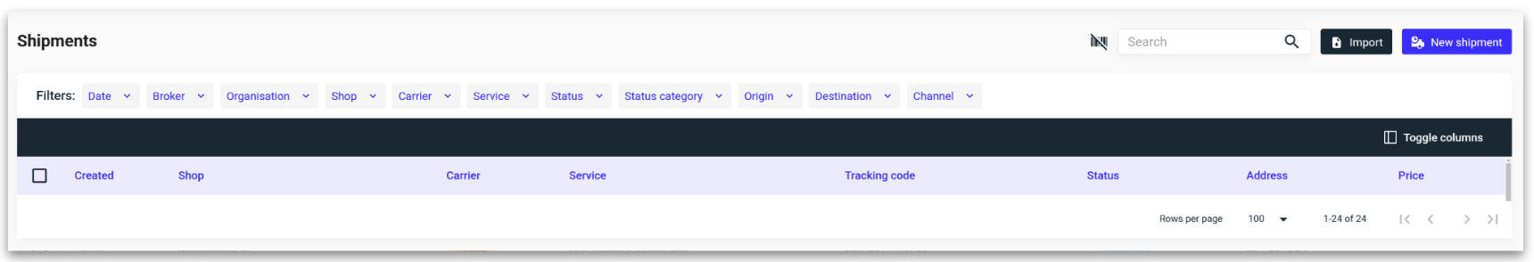 You will now be redirected to the shipment overview where the concept shipment is ready to be registered with the carrier.