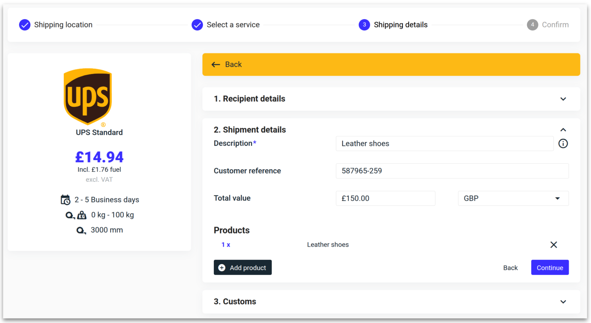 When shipping to destinations with customs requirements, an additional section will appear in the third step: Shipping Details.