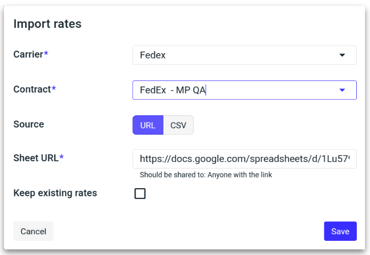 For carriers without a rate endpoint, purchase rates must be manually added to the rate sheet. These are referred to as manual rates.