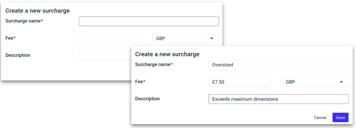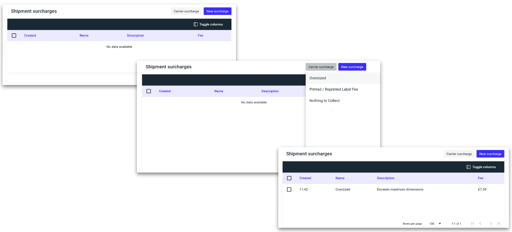 Selecting ‘New surcharge’ allows you to create a new carrier surcharge within a shipment.